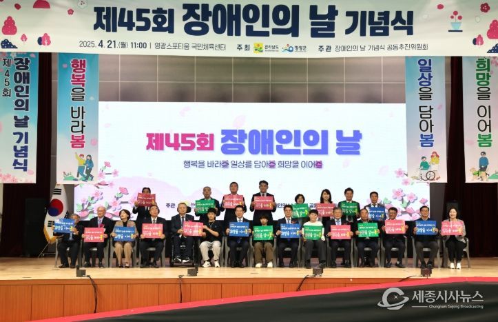 이날 기념행사에는 김영록 지사와 국회의원, 장애인단체장, 도민 등 2,000여 명이 참석한 가운데 장애인인권헌장 낭독, 표창장 수여, 인재육성 장학금 기탁, 퍼포먼스 순으로 진행됐다.