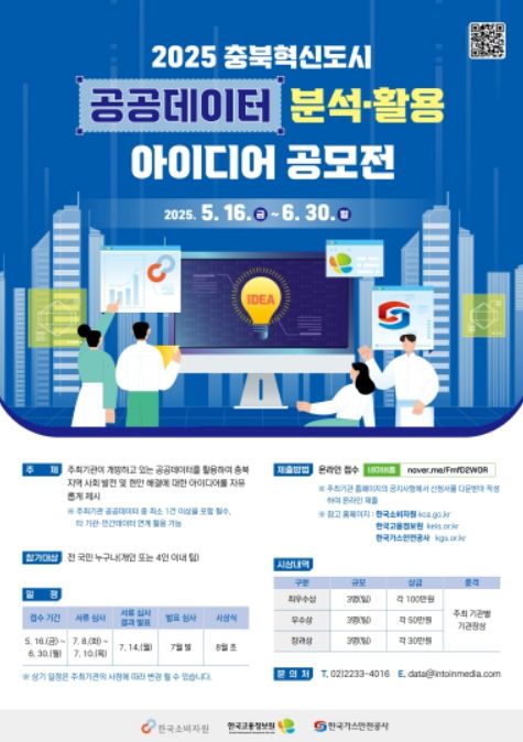 도민방송 문성호기자 | 고용노동부 한국고용정보원은 충북혁신도시 공공기관과 함께 '2025 충북혁신도시 공공데이터 분석·활용 아이디어 공모전'을 개최 진행한다고 밝혔다.