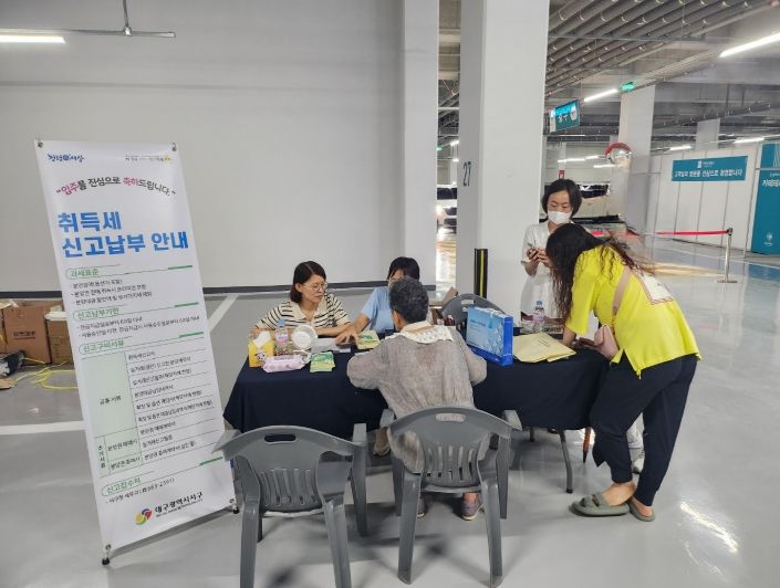 도민방송 정연호기자 | 대구 서구청은 지난 6월 21일부터 22일까지 이틀간, 다음 달 입주를 앞둔 두류 스타힐스(1,005세대) 입주 예정자를 대상으로 아파트 내에서‘찾아가는 이동 세무 사무소’를 운영했다.