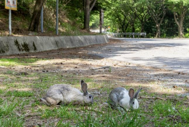 그 길을 따라 천천히 올라가다 보면, 어느 순간 고요한 숲길 사이로 뜻밖의 손님이 등장한다. 바로 최소 네 마리 이상으로 보이는 요술 토끼 가족이다. 처음엔 먹이를 찾아 나온 듯 보이던 이 토끼들은 이제 이 고개의‘마스코트’처럼 사람에게 먼저 다가와 방문객을 반기고 있다.