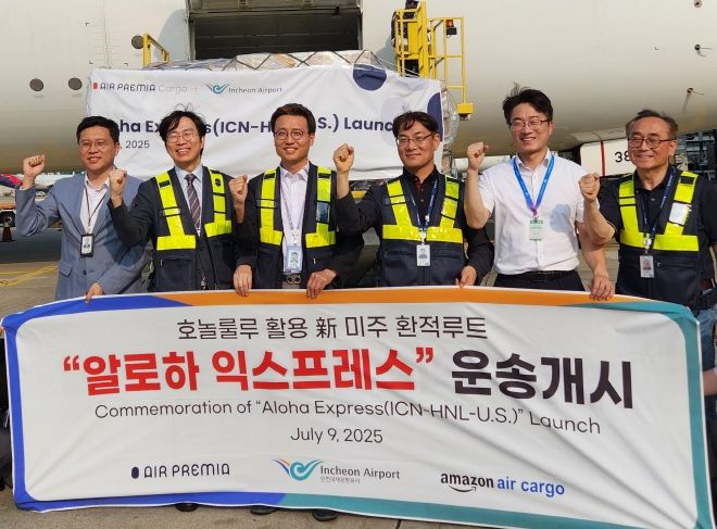 이번 신규노선은 에어프레미아의 인천-호놀룰루 직항노선을 활용해 항공화물을 호놀룰루까지 운송한 후 아마존 에어카고를 통해 미국 본토 내 주요 지역으로 이송하는 환적노선으로, 지난 9일 인천공항에서 첫 화물운송이 개시됐다.