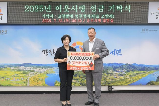 도민방송 문성호기자 | 공주시는 지난 31일 시청 집현실에서 고창愛애 풍천장어(대표 오말례)로부터 이웃돕기 성금 1천만 원을 기탁받았다고 밝혔다.