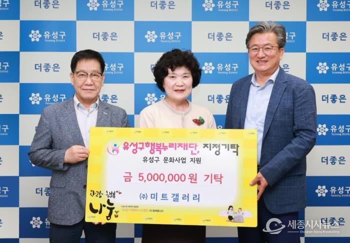 이번에 전달된 후원금은 유성구의 문화예술 도시 조성을 위해 유성구행복누리재단이 추진하는 문화 사업에 활용될 예정이다.