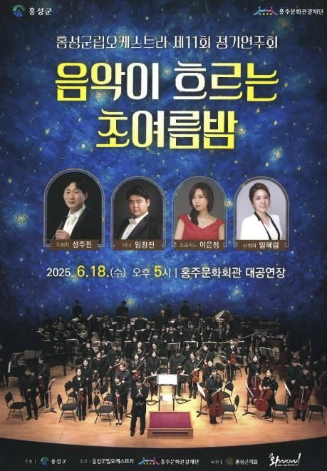 도민방송 문성호기자 | 2025년 홍성군립오케스트라 정기연주회가 오는 18일 오후 5시 홍주문화회관 대공연장에서 개최된다. 올해로 11회를 맞는 이번 연주회는‘음악이 흐르는 초여름밤’을 주제로 아름다운 선율과 다채로운 프로그램으로 관객을 맞이한다.