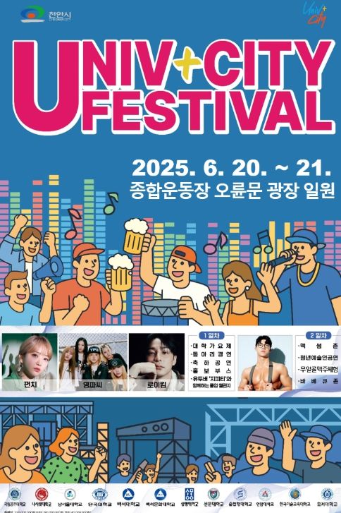 대학가요제를 시작으로 대학 대표 동아리 공연, 개막 퍼포먼스 ‘유니브시티 천안 선포식’과 인기 가수인 펀치, 영파씨, 로이킴의 축하공연이 이어질 예정이다.