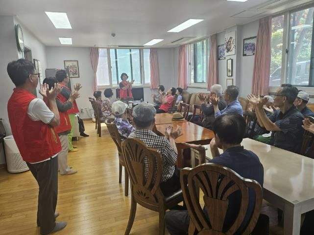 이날 자매결연 행사에서는 치매예방에도 좋은 '매일 하면 좋은 7가지 건강박수법'을 알려드리며 어르신들의 손바닥에 있는 혈을 자극하여 건강에도 도움이 될 수 있도록 진행했다.
