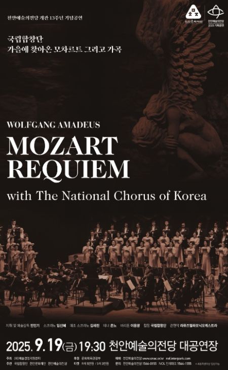 도민방송 문성호기자 | 천안문화재단은 천안예술의전당 개관 13주년을 맞아 오는 9월 19일 국립합창단 ‘가을에 찾아온 모차르트 그리고 가곡’ 공연을 선보인다고 1일 밝혔다.