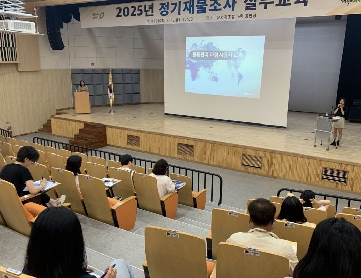 도민방송 정연호기자 | 청주시는 4일 제2임시청사 공연장에서 부서별 물품관리 담당공무원 80여 명을 대상으로 ‘2025년 정기재물조사 실무교육’을 실시했다.