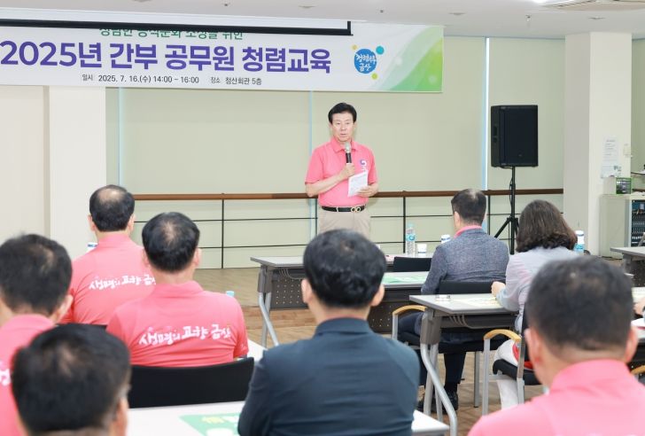 도민방송 문성호기자 | 금산군은 지난 16일 금산읍 청산회관에서 상호 존중을 실천하는 청렴한 조직문화 조성을 위해 간부 공무원 44명을 대상으로 청렴교육을 시행했다.