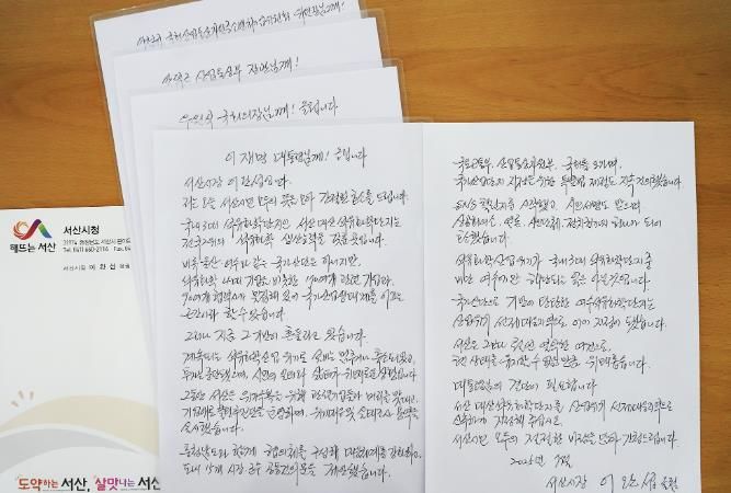 도민방송 문성호기자 | 이완섭 서산시장이 대산석유화학단지의 산업위기 극복을 위해 대통령 앞으로 친필 손 편지를 보냈다.