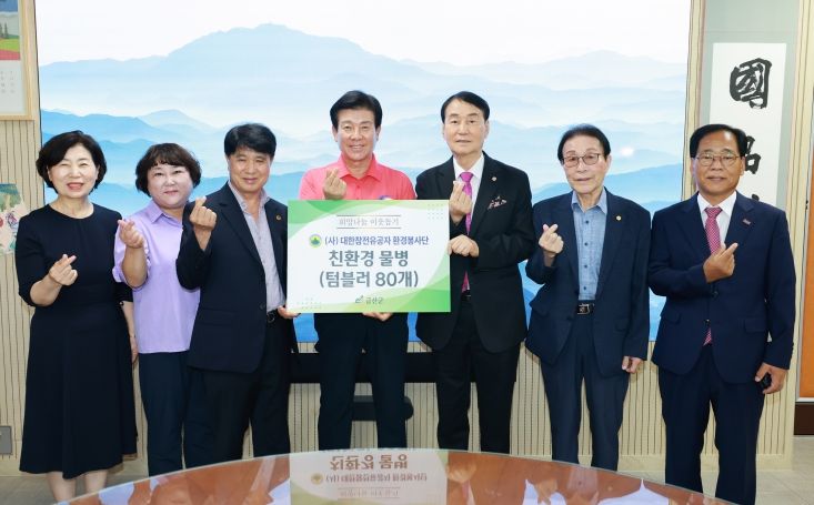 도민방송 문성호기자 | (사)대한참전유공자 환경봉사단(총재 전병권)은 지난 22일 금산군청을 찾아 친환경 텀블러 80개를 기탁했다.