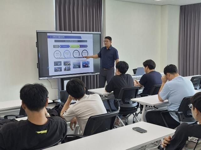 이번 교육은 총 40시간으로 구성된 재학생 교육 프로그램 중 16시간에 해당하며, 산업통상자원부와 과학기술정보통신부의 국비 지원으로 구축된 엔진동력계, 모터동력계, XR 장비 3종이 활용됐다. 특히 국내 제1호 전기하이브리드 선박인 ‘늘푸른충남호’를 대상으로 제작된 가상선박 3D모델 콘텐츠 기반 XR 장비를 활용해 실제와 유사한 환경에서 정교한 실습이 이루어졌다.