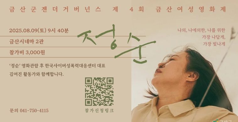 도민방송 문성호기자 | 금산군 8월 9일 오전 9시 20분부터 금산시네마 2관에서 제4회 금산여성영화제를 개최하고 여성연대와 성평등 문화 확산에 앞장선다.