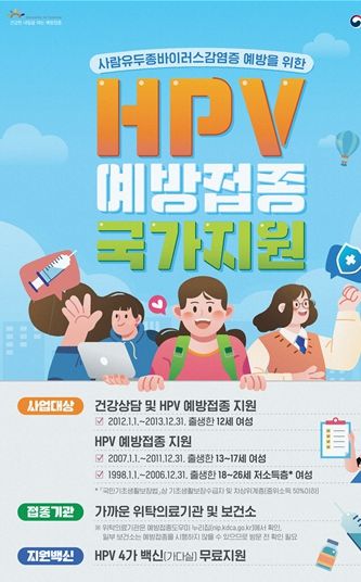 신병철 시 보건복지국장은 “올해 무료 접종 마지막 대상자인 2007년생 여성 청소년과 1998년생 저소득층 여성은 기한 내 꼭 예방접종을 받으시길 권장한다”며 “예방접종을 통해 면역력을 키우고, 건강하고 즐거운 방학기간을 보내시길 바란다”라고 말했다.