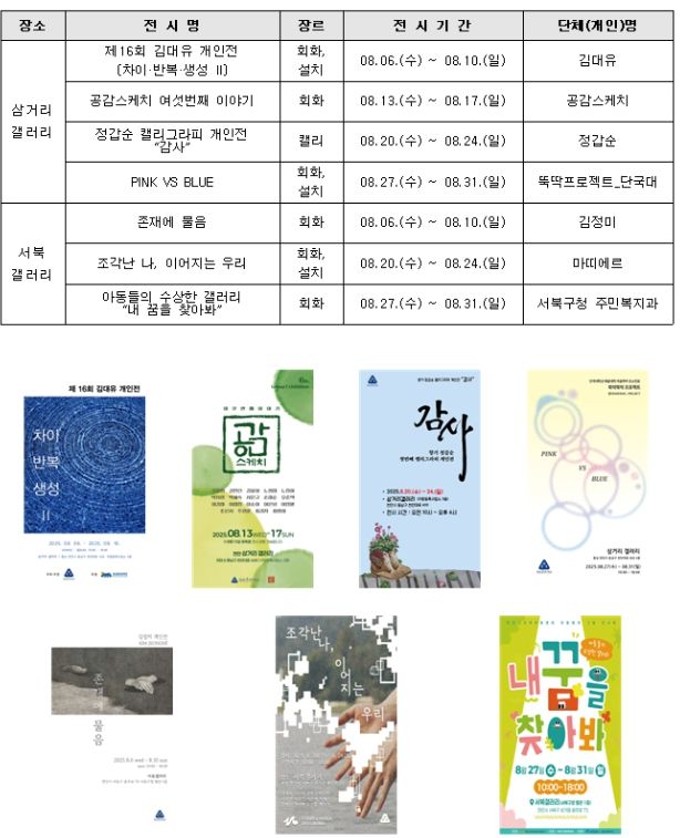 서북 갤러리에서는 ▲6~ 10일, 존재에 물음 ▲20~ 24일, 조각난 나, 이어지는 우리 ▲27~ 31일, 아동들의 수상한 갤러리 ‘내 꿈을 찾아봐’ 총 3건의 전시가 진행된다.