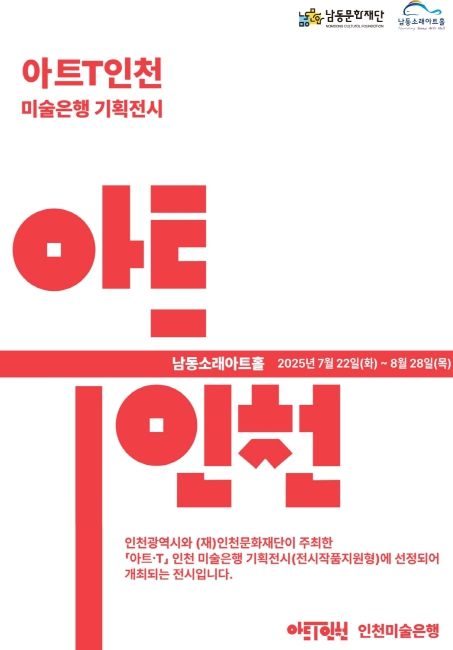 재단 관계자는 “이번 ‘아트·T 인천’ 전시는 인천지역 작가들의 작품을 구민들에게 소개함으로써 지역 미술에 대한 관심과 인지도를 높이는 계기가 될 것”이라며 “남동구 주민들이 생활 속에서 자연스럽게 문화예술을 접할 수 있도록 함으로써 전시문화 확산과 문화 향유권 증진에도 도움이 되길 바란다”라고 전했다.