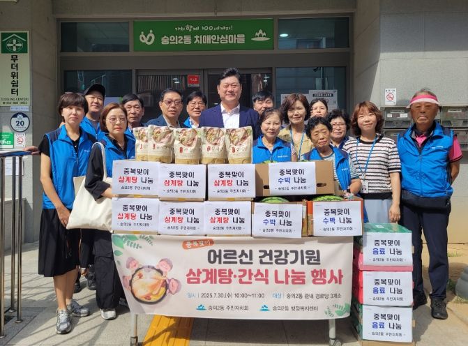 도민방송 문성호기자 | 미추홀구 숭의2동 주민자치회(회장 연두홍)는 지난 30일 중복을 맞아 관내 어르신들의 건강한 여름나기를 기원하며 나눔 행사를 진행했다.