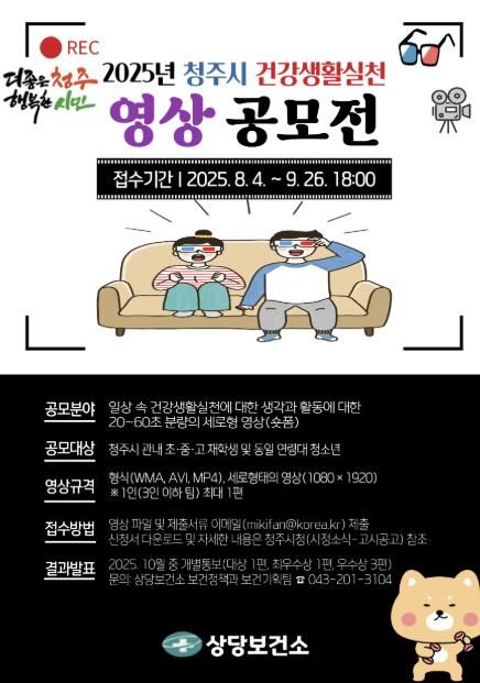 도민방송 임경희기자 | 청주시 상당보건소는 지역 청소년을 대상으로 2025년 건강생활실천 영상 공모전을 개최한다고 1일 밝혔다..
