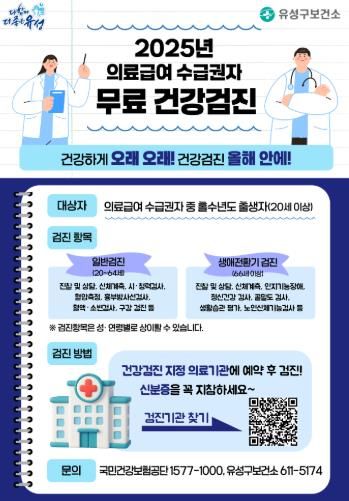 도민방송 정연호기자 | 대전 유성구는 의료급여 수급권자의 질병을 예방하고 건강을 증진하기 위해 건강검진 지원 사업을 추진한다고 1일 밝혔다.