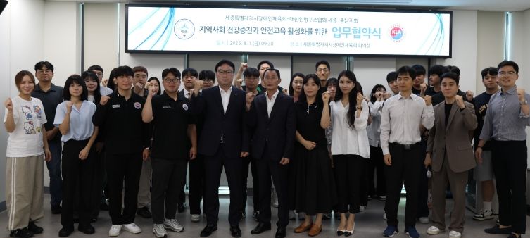 이날 협약식에는 임규모 세종시장애인체육회 사무처장과 김지태 대한인명구조협회 세종·충남지회 회장을 비롯한 양 기관 관계자 등 20여 명이 참석했다.