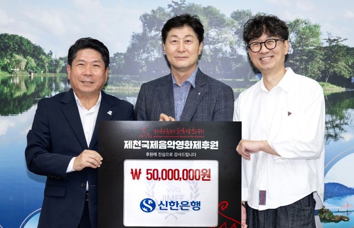 도민방송 임경희기자 | 신한은행은 지난 7월 31일 제21회 제천국제음악영화제(JIMFF)의 성공적 개최를 위해 후원금 5천만 원을 (사)제천국제음악영화제 이사장 김창규 제천시장에게 전달했다. 이번 후원은 지역을 대표하는 문화축제와의 지속적인 파트너십을 통한 상생 협력의 일환이다.