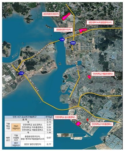 한편, 인천시는 환경특화 기술 구현 및 제품 생산 등 기업 비즈니스 공간 마련을 위해 서구 오류동 1179번지 일원, 약 77만㎡ 부지에 첨단기술 기업 및 앵커기업 등이 집적화된 검단2일반산업단지를 조성 중이며, 오는 하반기 착공을 목표로 추진하고 있다.