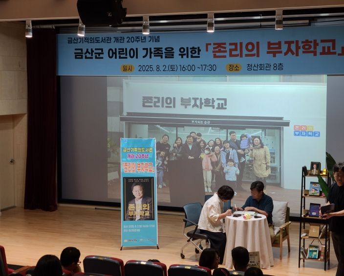 도민방송 문성호기자 | 금산기적의도서관 20주년 기념 ‘존리의 부자학교’ 특강이 지난 2일 금산읍 청산회관에서 성료했다.
