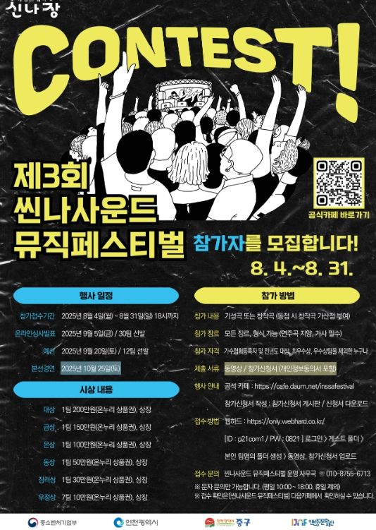 재단 관계자는 “씬나사운드 뮤직페스티벌은 단순한 시민가요제를 넘어, 지역 문화 향유의 기회를 넓히고 상권에 실질적인 활력을 불어넣는 축제로 자리매김할 것”이라며, “많은 시민이 함께해 주길 기대한다”라고 전했다.