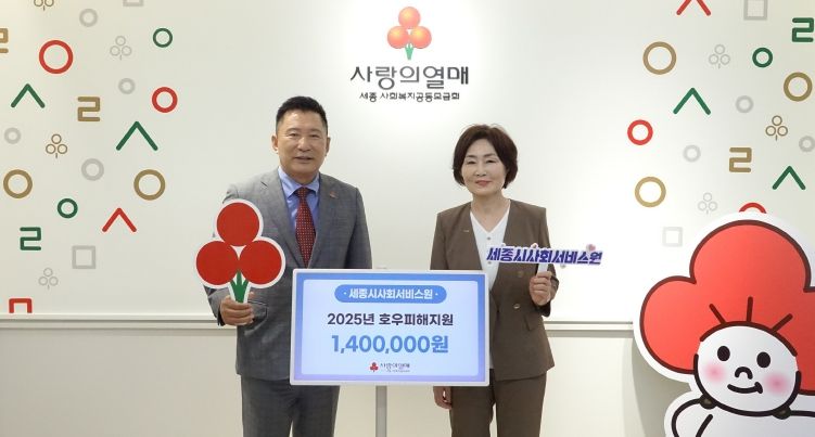도민방송 문성호기자 | 세종특별자치시사회서비스원은 4일 오전 11시, 사회복지공동모금회 세종지회를 방문해 최근 집중호우로 피해를 입은 이재민을 돕기 위한 구호성금 140만 원을 전달했다.