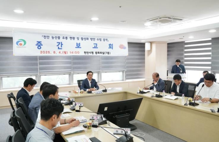 도민방송 문성호기자 | 천안시는 4일 시청 중회의실에서 ‘천안 농산물 유통 현황 및 활성화 방안 수립 용역’ 중간보고회를 개최했다.