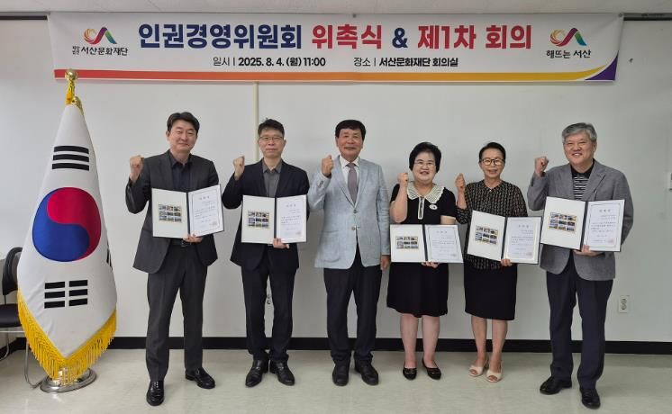 도민방송 문성호기자 | 서산문화재단은 지난 8월 4일 오전 11시, 재단 회의실에서 ‘인권경영위원회 위촉식 및 제1차 회의’를 개최하고 부위원장 선출 등 공식 활동을 시작했다.