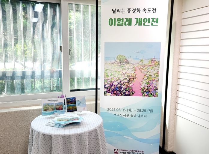 도민방송 문성호기자 | 인천광역시교육청서구도서관에서는 8월 5일부터 25일까지 이월례 작가의 개인전 ‘달리는 풍경화 속도전’을 늘봄갤러리에서 운영한다.