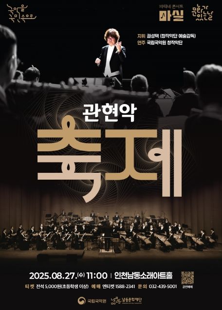 도민방송 문성호기자 | 인천시 남동구 남동문화재단은 8월 마티네콘서트 마실로 국립국악원 창작악단의 ‘관현악 축제’를 남동소래아트홀에서 선보일 예정이라고 5일 밝혔다.