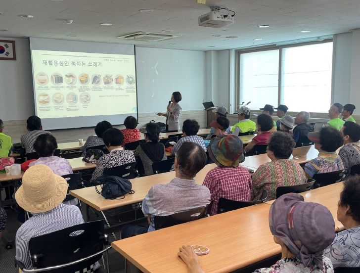 교육은 기후 위기와 미래 자원 순환 사회를 조성하고 환경보호 실천을 생활화 하기 위한 목적으로 마련돼 어르신들을 대상으로 올바른 분리배출 방법 및 환경보전의 중요성에 관해 진행됐다.
