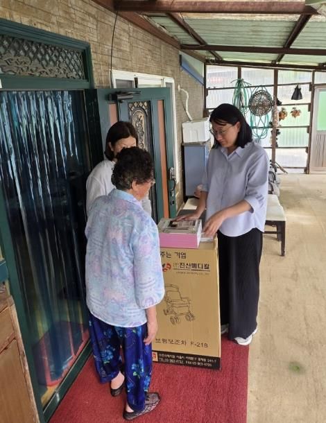 물품을 지원받은 대상자는 “그 전에 쓰던 게 고장이 났는데 비용이 커 구매하지 못하고 있었다”며, “보조보행기가 생겨서 매우 기쁘다”며 고마움을 표했다.