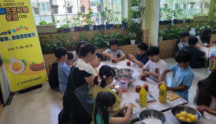 치유프로그램은 식용꽃을 이용해 꽃차를 만들고 계절과일로 청을 만드는 과정에서 자연의 향기와 색을 느끼며 학생들의 감성적 치유와 성취감을 끌어내도록 구성됐다.