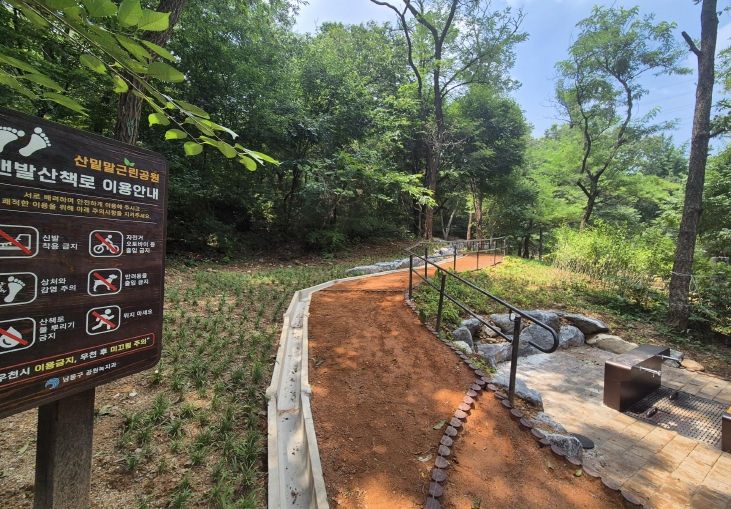 구는 최근 어싱(Earthing)의 인기로 맨발 산책로 신설과 휴게시설 정비 요청이 많은 점을 고려해 두 차례의 설명회로 주민 의견을 수렴해 사업을 추진했다.