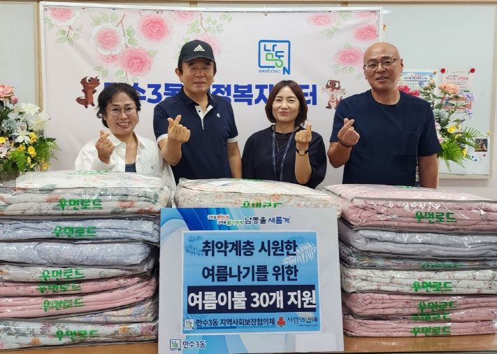 한편, 만수3동 지역사회보장협의체는 여름 이불 지원뿐 아니라 한방삼계탕 지원, 선풍기 지원 등 무더위에 지친 소외된 이웃들을 위한 사업을 적극 펼치고 있다.