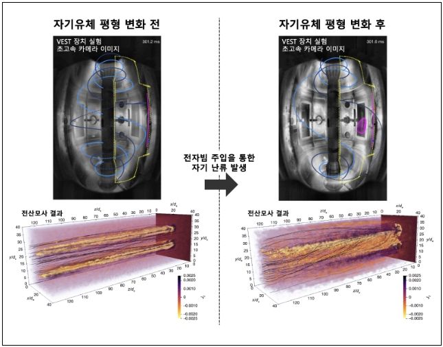 서울대 박종윤 박사와 아시아태평양이론물리센터 윤영대 박사 연구팀은 서울대에 구축된 핵융합 실험 장치를 이용한 실험 데이터 분석과 한국핵융합에너지연구원의 슈퍼컴퓨터(KAIROS)를 이용한 입자 모의실험(시뮬레이션) 검증을 통해, 미시 자기 난류를 발생시키면 자기재연결이 효과적으로 발생해 플라즈마에 거시적인 구조 변화를 일으킬 수 있다는 사실을 입증했다.