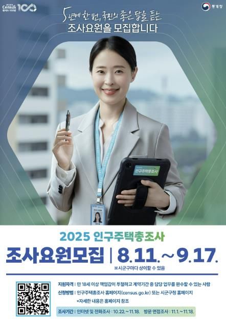 모집 기간은 오는 8월 11일부터 9월 17일까지며, 지원 자격은 18세 이상이며 조사 기간 중 담당 업무를 완수할 수 있는 사람이어야 한다.