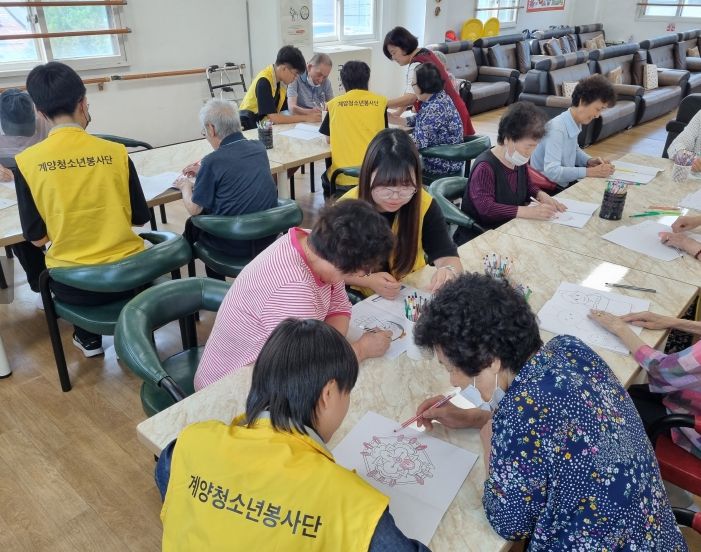 완성된 컬러링북은 ‘계양 청소년봉사단’이 직접 구립계산노인복지센터를 방문해 전달했다. 이후 청소년들은 어르신들과 함께 직접 색칠 활동을 하며 따뜻한 교감을 나누는 시간을 가졌다.