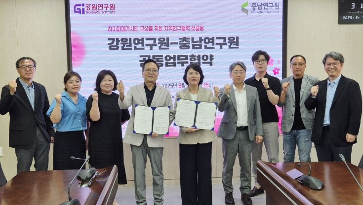 도민방송 문성호기자 | 충남연구원은 7일 강원연구원과 “초광역협력을 통한 지역경쟁력 강화와 상생발전을 위한 학술·연구 교류 협약”을 체결했다.