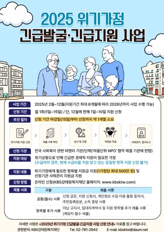 이번 사업은 갑작스러운 위기 상황으로 인해 긴급한 경제적 지원이 필요한 가정을 대상으로 하며 대상자들에게는 최대 500만 원의 지원금과 함께 사례관리 서비스가 제공된다.