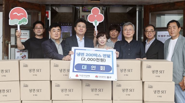 도민방송 문성호기자 | 인천시 중구는 인천 지역 사업주 대표들의 모임인 ‘대인회(회장 임형택)’에서 지역 내 어려운 이웃을 위해 사용해 달라며 냉면 200박스(200만 원 상당)를 기부했다고 8일 밝혔다.