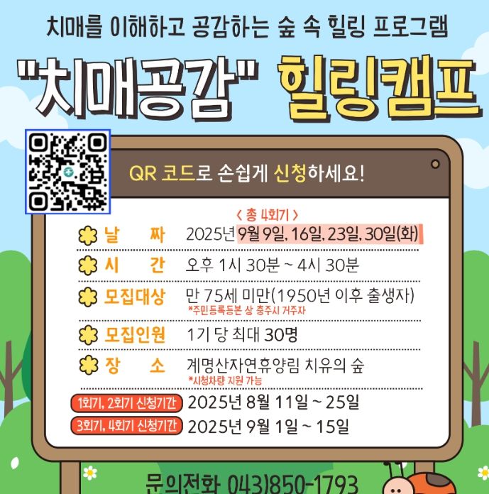 시 관계자는 “이번 힐링캠프는 치매에 대한 막연한 불안과 편견을 줄이고, 시민들이 치매를 함께 이해하고 대비할 수 있는 계기를 마련하고자 기획됐다”라며,“시민들의 많은 관심과 참여를 바란다”라고 밝혔다.