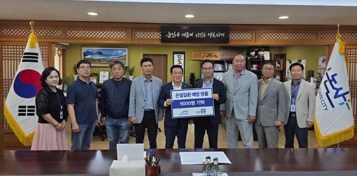 지난 7일 K-water 논산수도센터는 병물 9,000병(450박스)을 논산시에 전달했다. 이날 기탁식에는 논산시 100세건강위원회연합회, 공공산후조리원·트리븐아파트 신축공사현장 관계자 등이 참석해 폭염 취약계층을 위한 병물 기탁에 대한 감사의 마음을 전하고 시민 건강을 위한 민관 협력 의지를 다졌다.