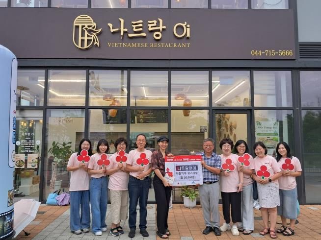 (도민방송=충남) 문성호기자 | 세종특별자치시 나성동지역사회보장협의체가 지난 11일 베트남 음식점 ‘나트랑어이’와 착한가게 기부 협약식을 진행했다.