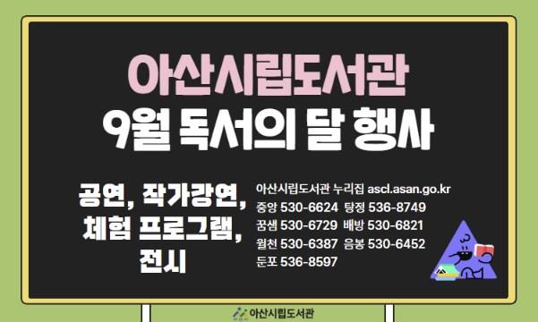 (도민방송=충남) 문성호기자 | 아산시립도서관은 9월 ‘독서의 달’을 맞아 시민들이 책과 도서관을 더욱 가까이 느낄 수 있도록 다양한 프로그램을 마련한다. 이번 행사는 ‘2025 아산 방문의 해’를 기념해 도서관 이용을 활성화하고, 전 세대가 독서 문화를 향유할 수 있도록 기획됐다.