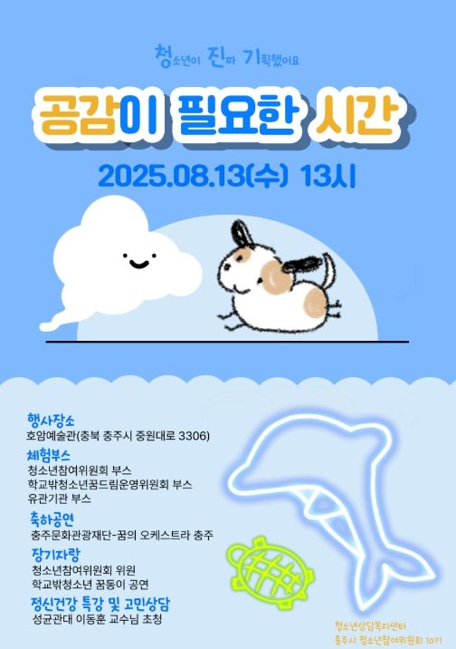 (도민방송 임경희기자) 충주문화관광재단은 오는 8월 13일 충주 호암예술관에서 열리는 충주시 청소년 기획축제 ‘청·진·기!(청소년이 진짜 기획했어요!) 페스티벌’에 꿈의 오케스트라 ‘충주’ 단원들이 초청 공연으로 참여한다고 밝혔다.