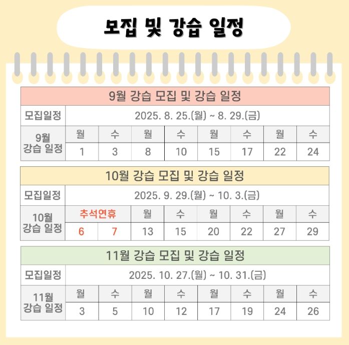 강습은 만 8세 미만의 자녀를 둔 출산 여성을 대상으로 주 2회(월, 수 14:00~14:40) 진행되며, 전문 체육지도자가 맞춤형 강습을 제공할 예정이다.